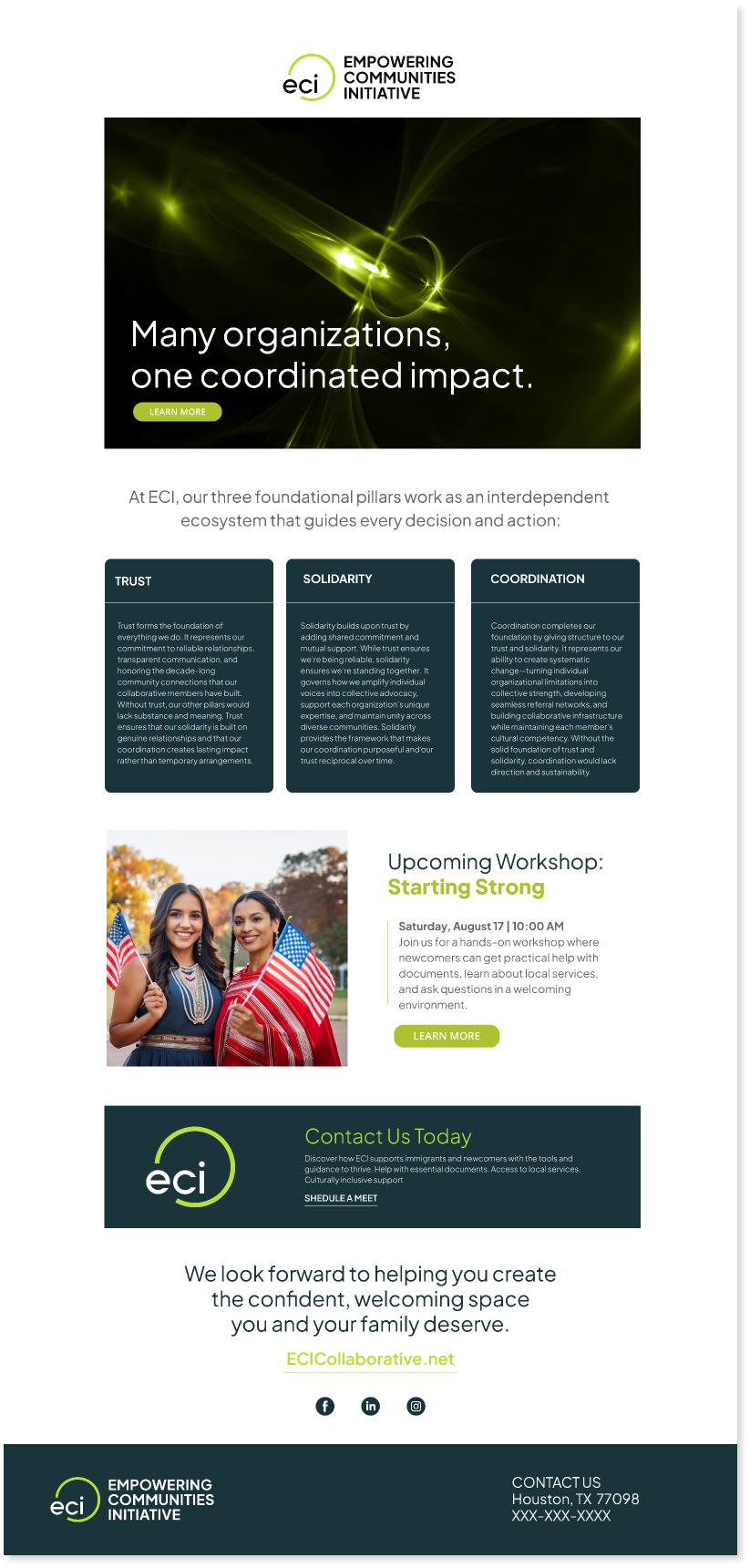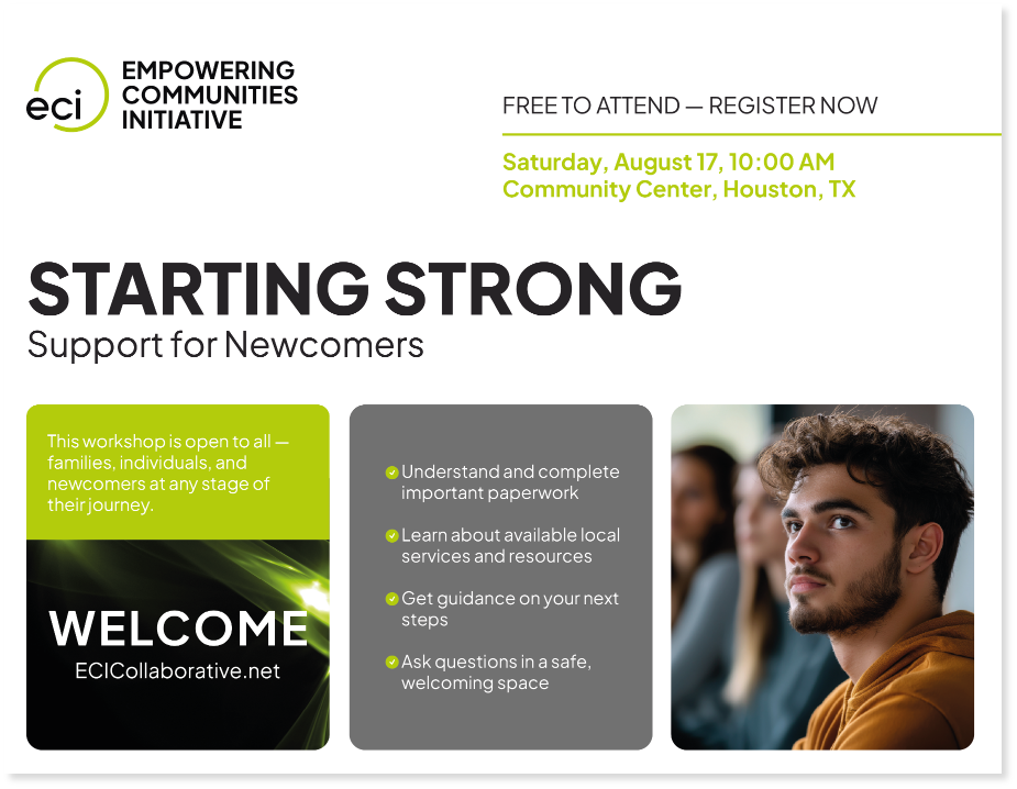 The following examples demonstrate how ECI’s visual identity can be applied across various marketing formats. These templates and designs ensure consistency, cultural sensitivity, and clarity of messaging — all while maintaining flexibility for different types of content and audiences.